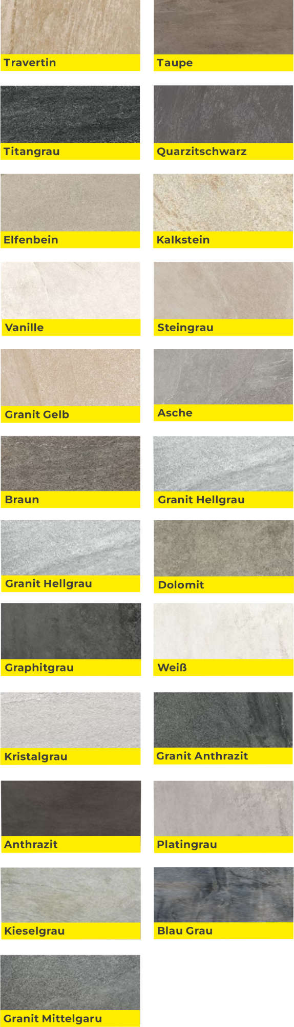 - Granit Gelb: 60 x 60 x 2 cm | 80 x 80 x 2 cm